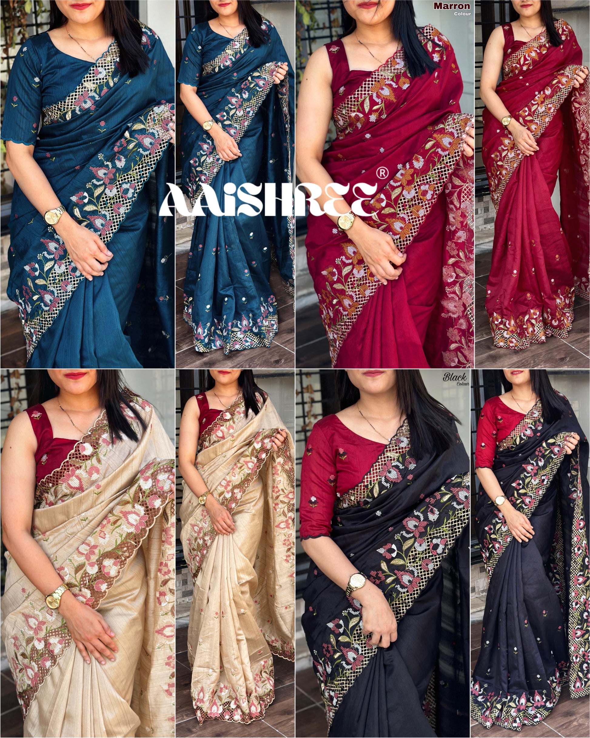 Saree- Thread Embroidered work with cut work & Boaring pattern.
